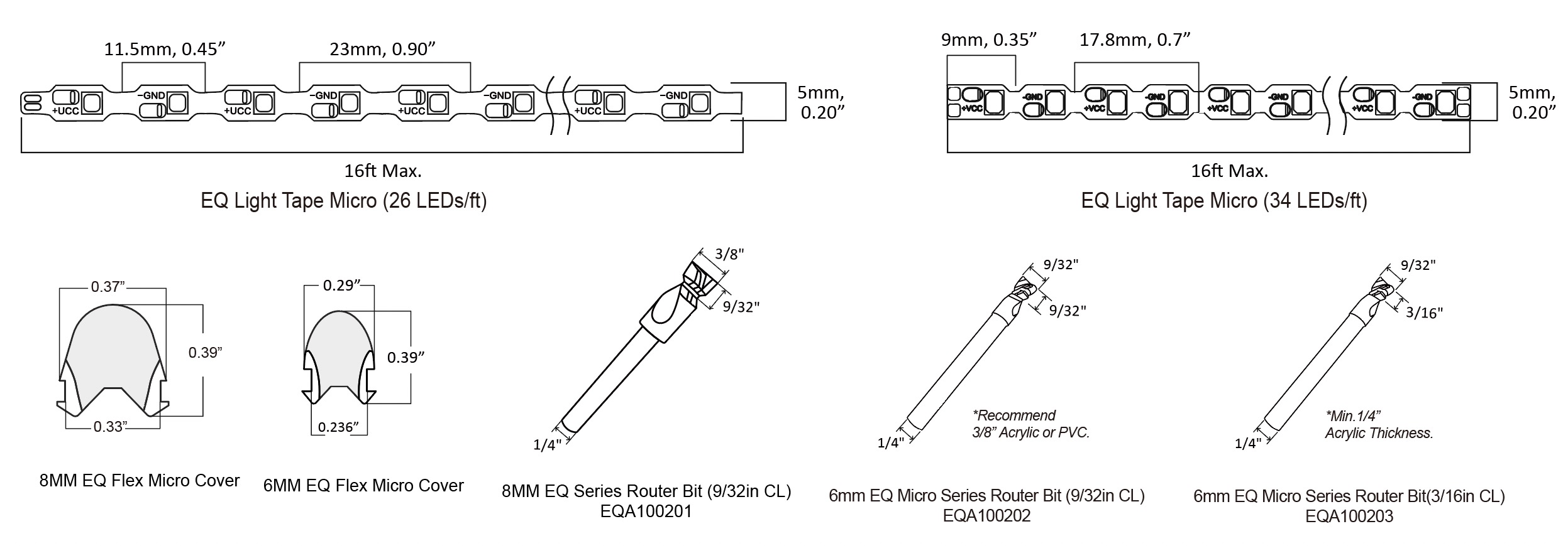 The EQ Micro Flex simplifies the process of creating neon signs, making it more user-friendly and cost-effective than ever. This innovative product consists of two main components: the EQ Micro LED tape, which boasts a solderless design for ease of use, and separate flex covers available in a variety of colors to suit your style. Additionally, the essential bits for routing are included as accessories, ensuring you have everything you need.